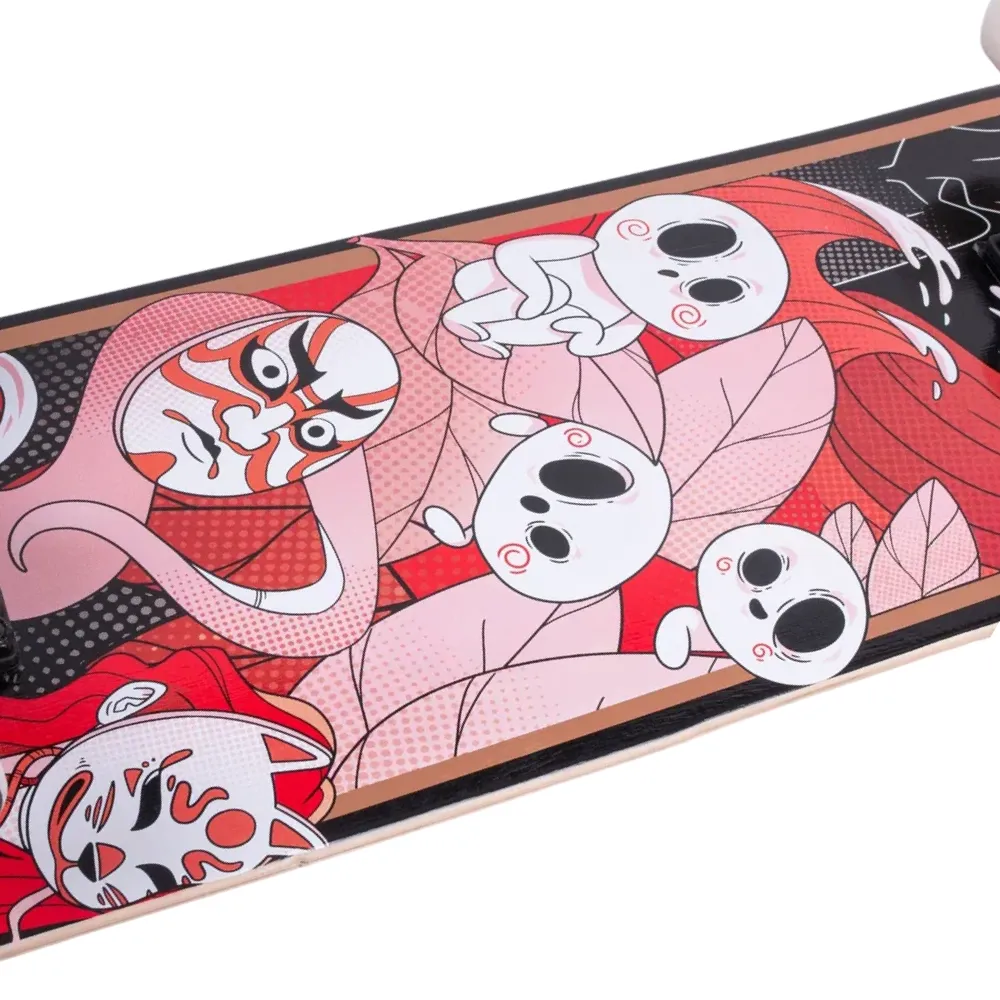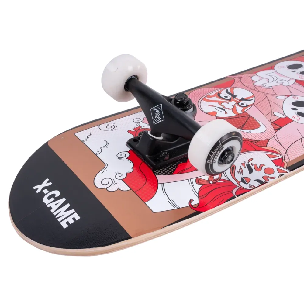 Скейтборд Tech Team X-Game 2024 красного цвета - это идеальное сочетание стиля и функциональности. Дека, изготовленная из 9 слоев прочного китайского клена, имеет размер 31”х 8”. Верхняя часть деки покрыта черной шкуркой 80AB для отличной сцепляемости, а нижняя украшена стильным принтом в японском стиле в красных тонах - подчеркивающим ваш индивидуальный стиль. Материал колес - PU 52x32 mm, с жесткостью 85А, обеспечивает отличное управление и стабильность на любой поверхности. Скейтборд оснащен подшипниками стандарта ABEC 9 для гладкой и быстрой езды. Дека имеет двойной концевой загиб (Double Kick), что делает его подходящим для исполнения разнообразных трюков. Этот скейтборд будет прекрасным выбором как для новичков, так и для опытных райдеров.