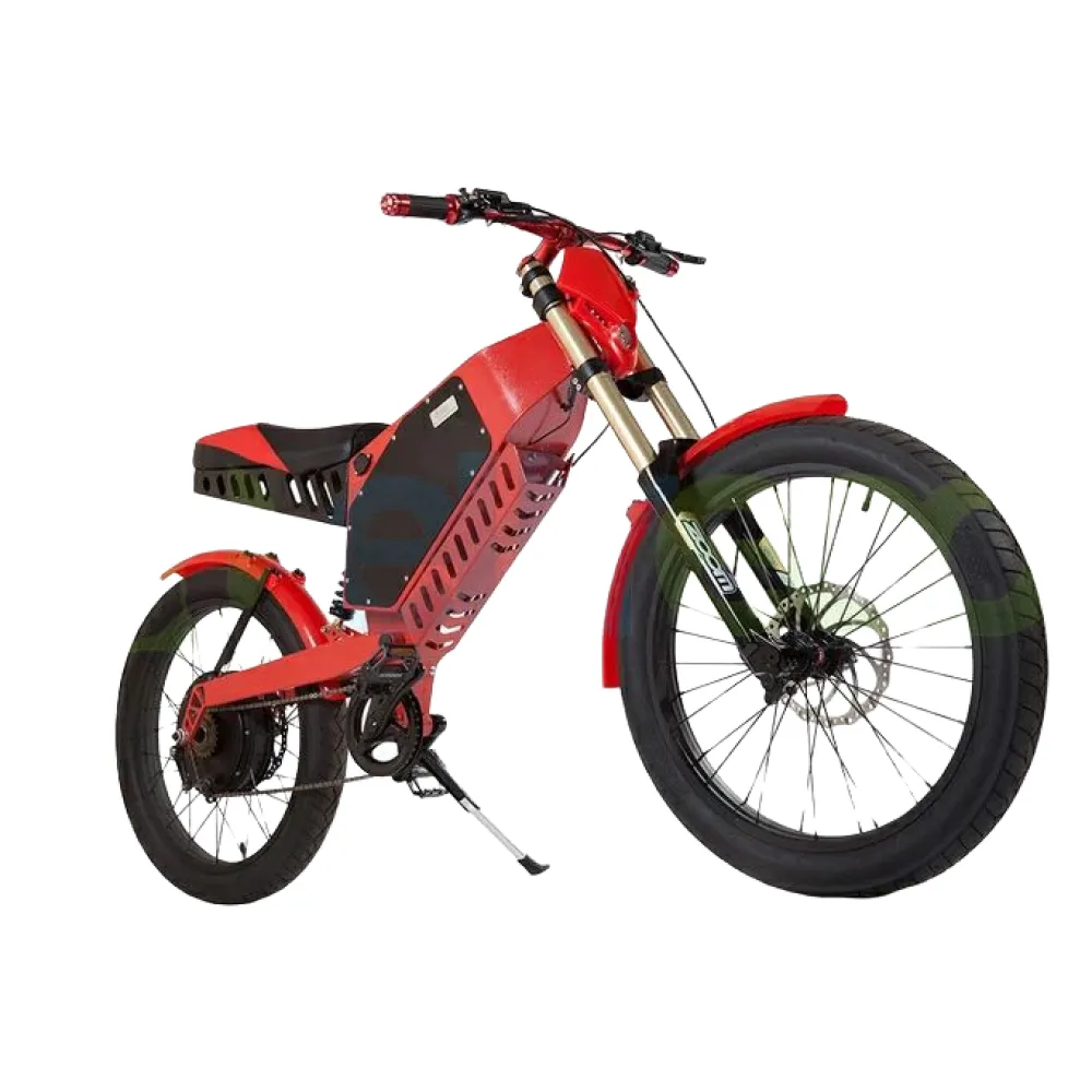 Конструкционные особенности рамы выдерживают максимальные нагрузки. Батарея емкостью 35 А*/ч надежно укомплектована в раме, защищена от негативных внешних воздействий. Мощность электромотора 3000 Вт способна выдавать скорость до 60 км/час, емкости батареи хватает на преодоления расстояния до 90 км пути. Увеличить пробег можно за счет перехода на режим педалирования. Фирменная вилка ЗУМ с задней подвеской, 24-дюймовые колеса с широкой покрышкой гарантируют безопасную скоростную езду, плавность хода по бездорожью и везде проходимость модели. Объемное мягкое мотоседло повторяет анатомические части тела, рассчитано на водителя и пассажира, обещает длительное безопасное путешествие. Наличие бортового компьютера исключает появление непредвиденных ситуаций в дороге.