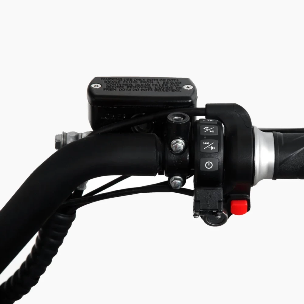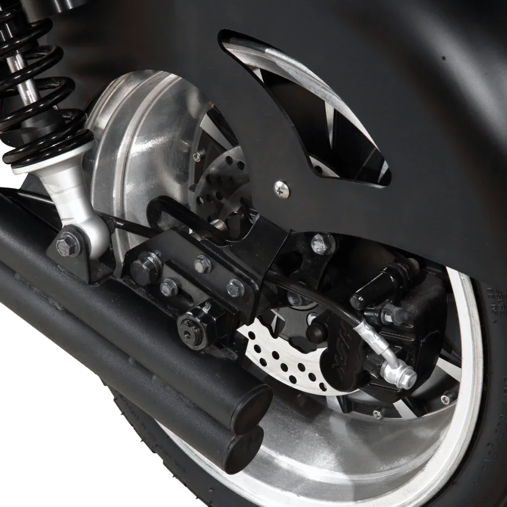 За безопасность райдера отвечает двойная система гидравлических дисковых тормозов на обоих колёсах. Присутствует шумная система сигнализации с блокировкой заднего мотор колеса.