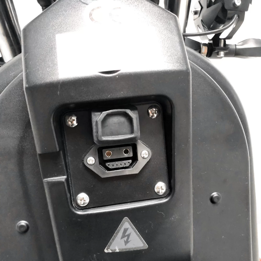 Быстросъемный аккумулятор расположен под сиденьем водителя и имеет следующие характеристики - 63V и 50Ah. Так же есть место дополнительное место для второй батареи.