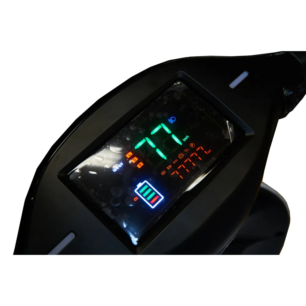 В дороге, вы сможете расслабиться и полностью насладиться передвижением с комфортом WOQU C1: спереди находятся два стекла заднего вида, также есть задний стоп-сигнал и индикация поворотов. В темное время суток спасти освещение на дороге вам поможет мощная LED подсветка. При различных ситуациях на дороге можно подавать сигнал другим водителям с помощью кнопки на руле. Спереди на руле находится цветной бортовой компьютер, который транслирует скорость, количество заряда и пробега.