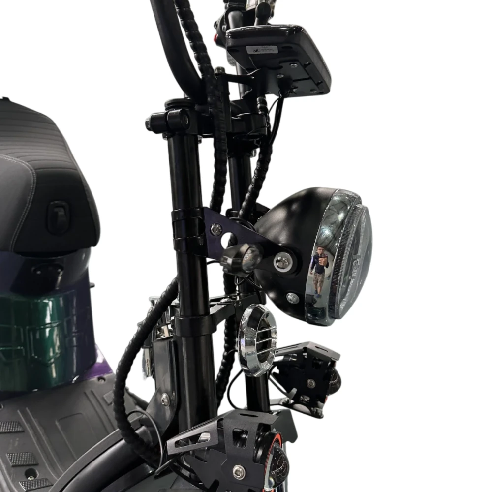 Скутер оборудован двумя независимыми электродвигателями по 1950 Вт каждый, что в совокупности даёт 3900 Вт тяги. Это обеспечивает уверенное движение, разгон до 60 км/ч, отличную устойчивость и возможность преодолевать подъёмы до 35°.