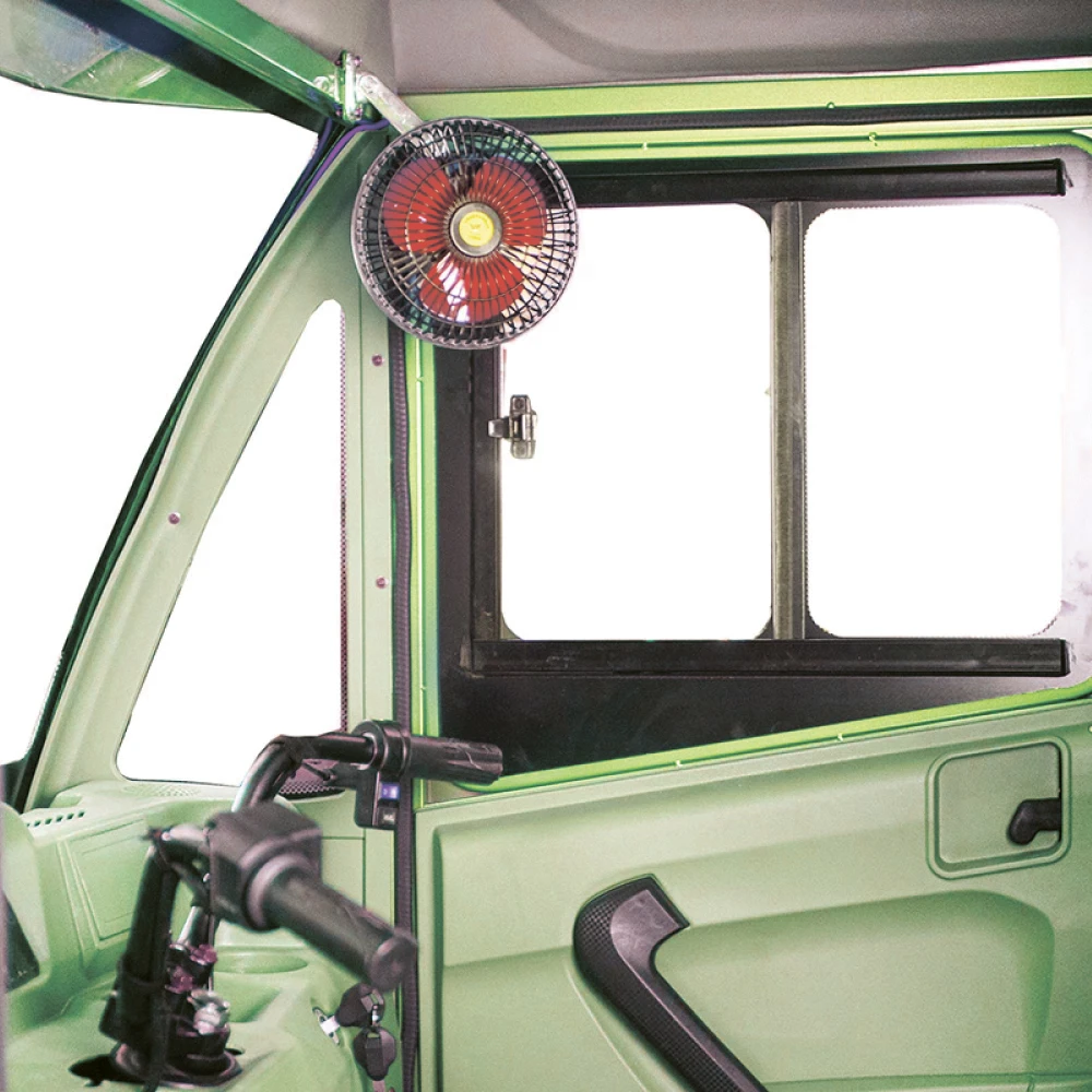 Модель оснащена современным тяговым бесщеточным новым мощным мотором с параметрами 1000 Вт. Такая начинка улучшает скоростные характеристики техники. Электротрицикл быстро развивает скорость до 25 км/час. Откидные борта кузова позволяют легко выгружать крупногабаритный груз. Герметично закрытая кабина допускает езду при любых погодных условиях, открывается с двух сторон.