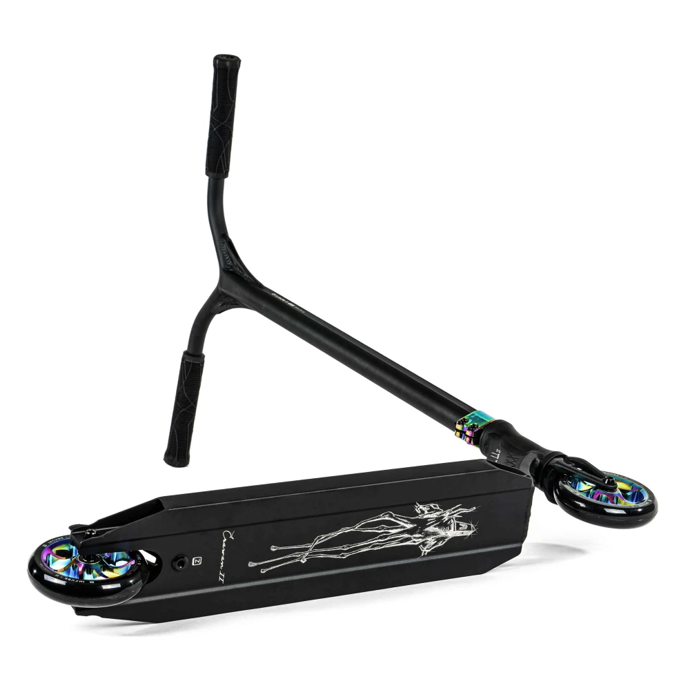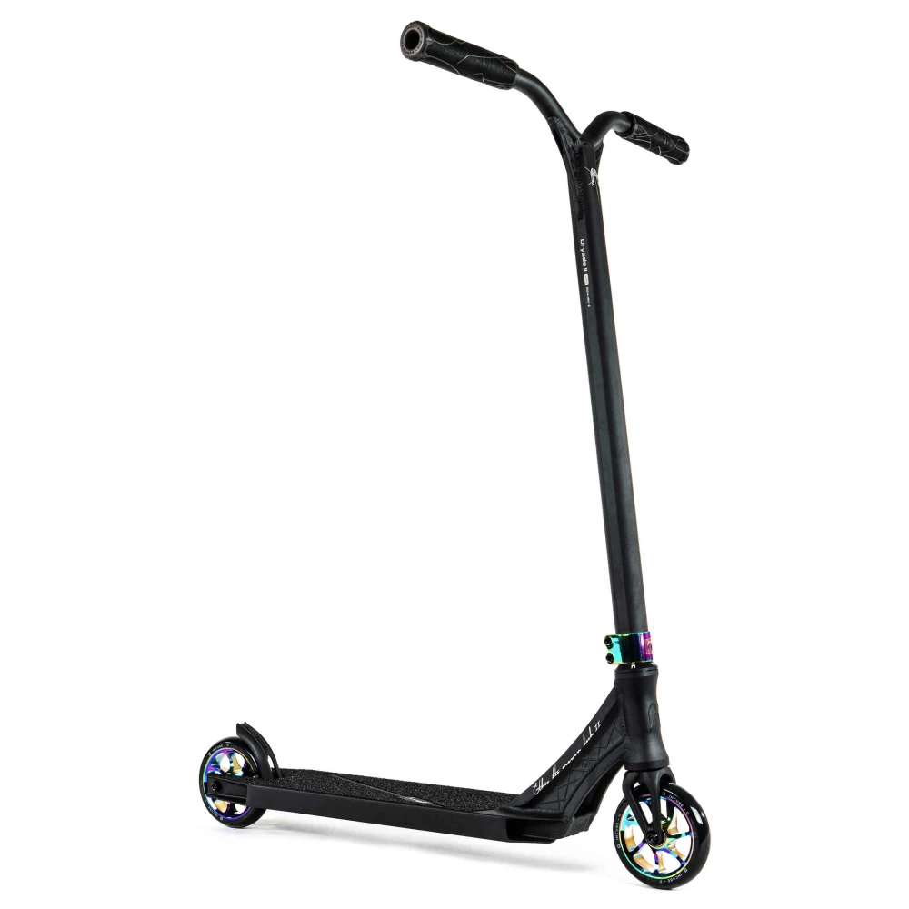 Ethic Erawan V2 (S) neochrome — это не просто трюковой самокат, а настоящее произведение искусства в мире экстрима. Сочетание строгих черных тонов с яркими дисками и хомутом в градиентном цветовом исполнении с эффектом бензина создает уникальный стиль, который привлекает внимание и подчеркивает индивидуальность райдера. Этот самокат весит всего 2.79 кг, что делает его невероятно легким и удобным для выполнения трюков любой сложности.Колеса диаметром 110 мм и высококачественные подшипники класса ABEC 9 обеспечивают плавность и стабильность движения, позволяя райдеру полностью сосредоточиться на выполнении трюков.